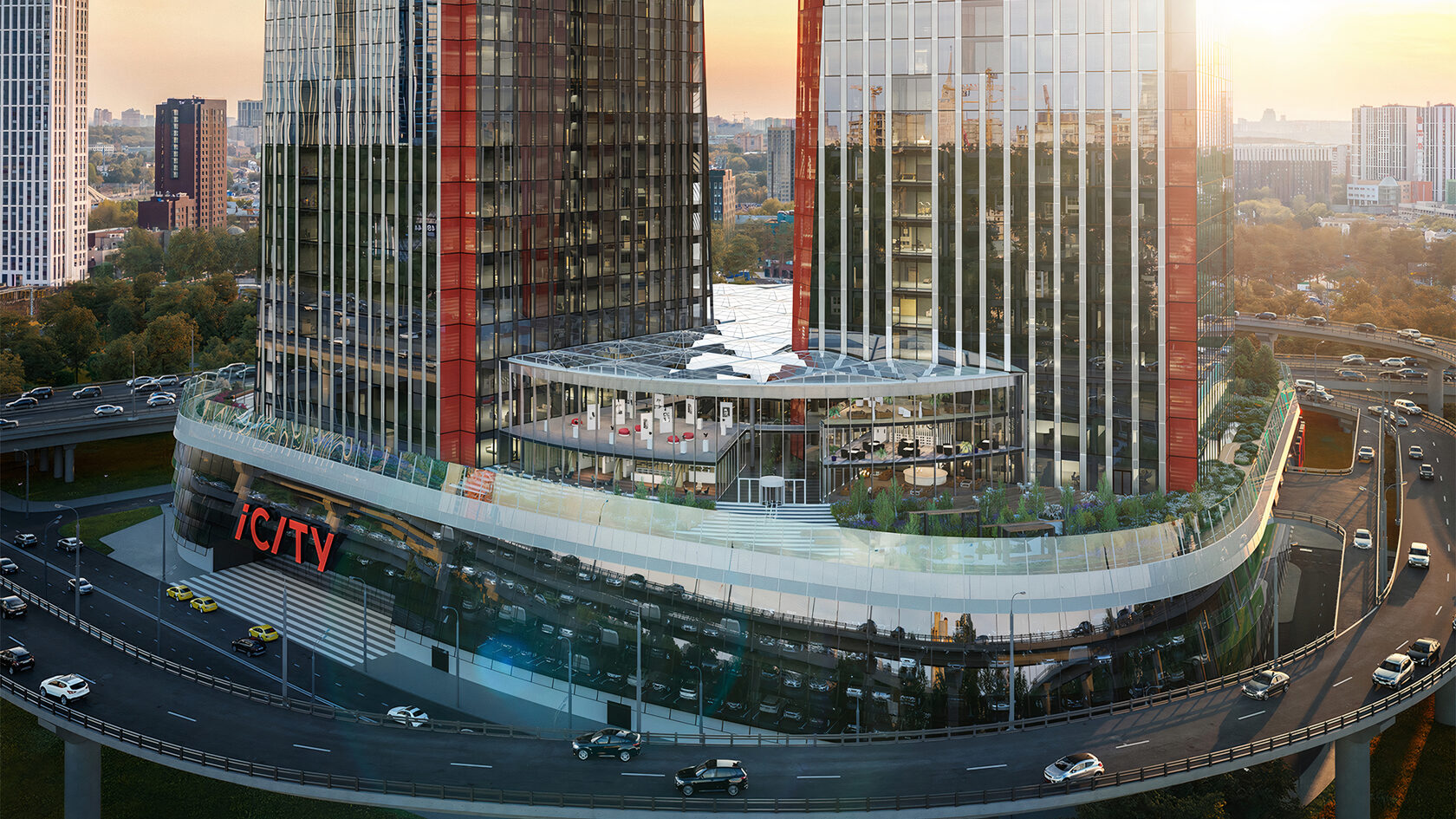 iCITY — это деловой комплекс А-класса, расположенный на территории Москва-Сити. В его концепцию легли «умные» технологии Smart building, а сам деловой центр стал первым в России полностью цифровым офисным проектом. Комплекс включает два небоскрёба, объединённых в единый архитектурный ансамбль 8-этажным стилобатом. 62-этажная башня iCity Space Tower имеет высоту 256 м, 34-этажная Time Tower — 150 м. На верхних этажах каждой из башен располагаются SKY-террасы, с которых открывается вид на мегаполис. На территории комплекса разместятся офисные помещения от 207 до 1822 квадратов, торговые галереи, рестораны, фитнес-центр с бассейном, а также оборудованные для работы коворкинги.